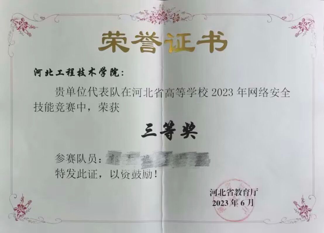 为增强网络安全意识,提升网络安全工作保障能力,党政办公室代表学校参加了由省教育厅举办的河北省高等学校2023年网络安全技能竞赛,并荣获三等奖。