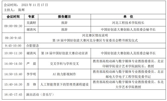 2023年11月17日,伟德官网承办的第18届中国好创意大赛河北高校分赛区启动仪式于伟德bv国际体育图书馆报告厅举行,现通知如下: