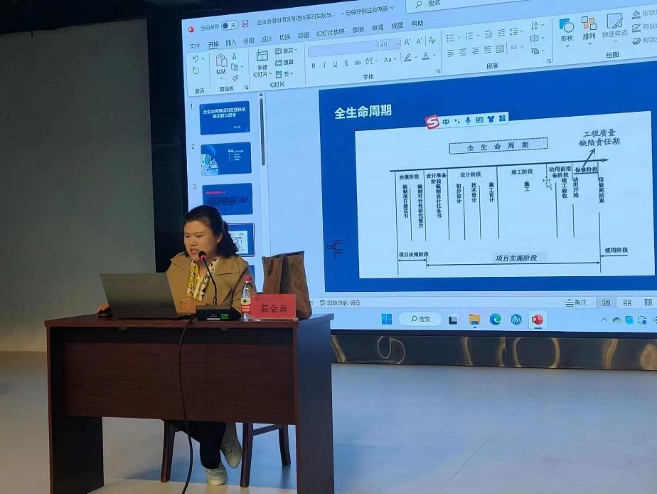 为拓宽学生专业认知面,提升工程实践素养,4月19日上午,土木工程学院邀请河北冀淼市政工程有限公司副总经理茹会丽为2022级工程管理专业本科生做题为“全生命周期项目管理体系的实践与思考”的主题讲座。讲座由土木工程学院教学副院长李伟娜主持,工程管理系部分教师及2022级工程管理专业146名学生参加会议。