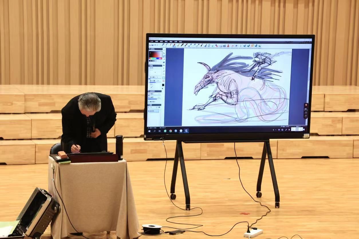 王伟教授以其深厚的艺术造诣和丰富的实践经验,从艺术实践经历、传媒艺术与中国独有的连环画艺术形式、数字绘画的魅力等多个方面,深入浅出地阐述了艺术的价值和魅力。并通过展示自己创作的连环画、动画原稿、电影分镜等艺术作品,使师生们更加直观地感受到了艺术的创作过程。