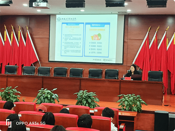王海宾主任从结核病的发病机制、传播途径、易感人群、临床症状及诊断预防等几方面用通俗易懂的语言和简洁生动的图片,深入浅出的讲解了结核病。他强调,结核病在全球范围内仍是重要的公共卫生挑战,作为一种严重危害人类健康的慢性传染病,在人员高度密集的校园,它的传播风险及防控工作的重要性不言而喻。传染病防控要从传染病源头抓起及时隔离管控传染源,切断传播途径,保护易感人群,医校联合共筑校园健康防线。同时建议大学生应养成良好的生活作息习惯,保持宿舍、教室等场所的通风,积极参加体育锻炼,提高自身免疫力,降低感染风险。