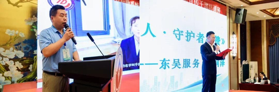 开班仪式结束后,武汉学院后勤保障处处长董运祥,镇江华舟物业管理有限公司副总经理张丽华两位嘉宾,分别就各自在后勤宣传工作方面的经验进行了分享。