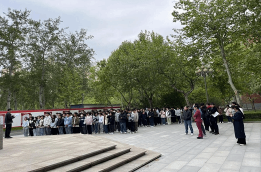 2023年4月24日,校大学生消防协会于孔子像前举行“落实安全责任,推动安全发展”消防车讲解活动。参与人员有校大学生消防协会成员以及红旗大街消防救援站消防员和参与活动的大学生。