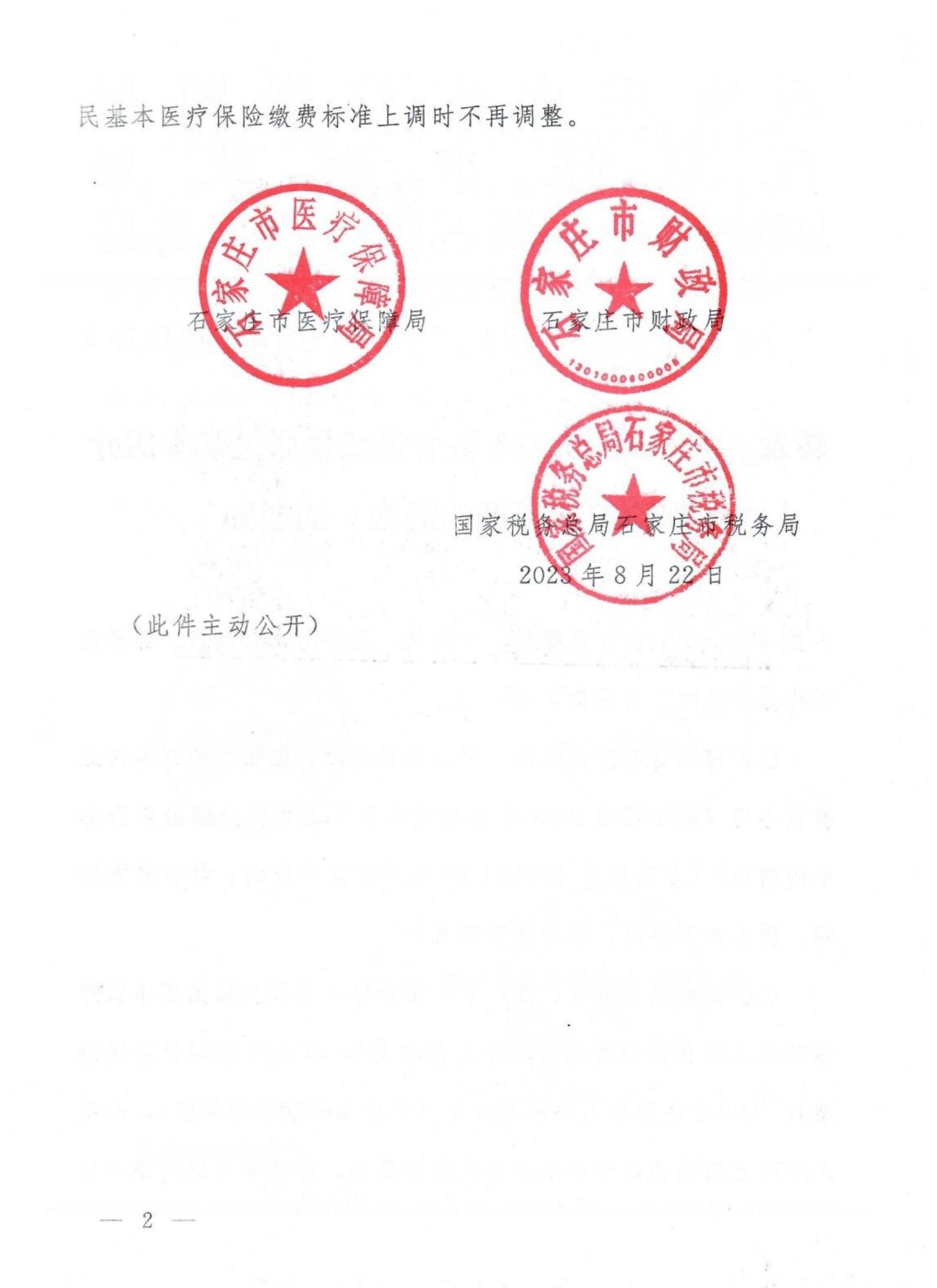 石医保函[2023]74号 石家庄市医疗保障局、石家庄市财政局、国家税务总局石家庄市税务局转发《关于明确2023年全省城乡居民基本医疗保险筹资标准的通知》的通知