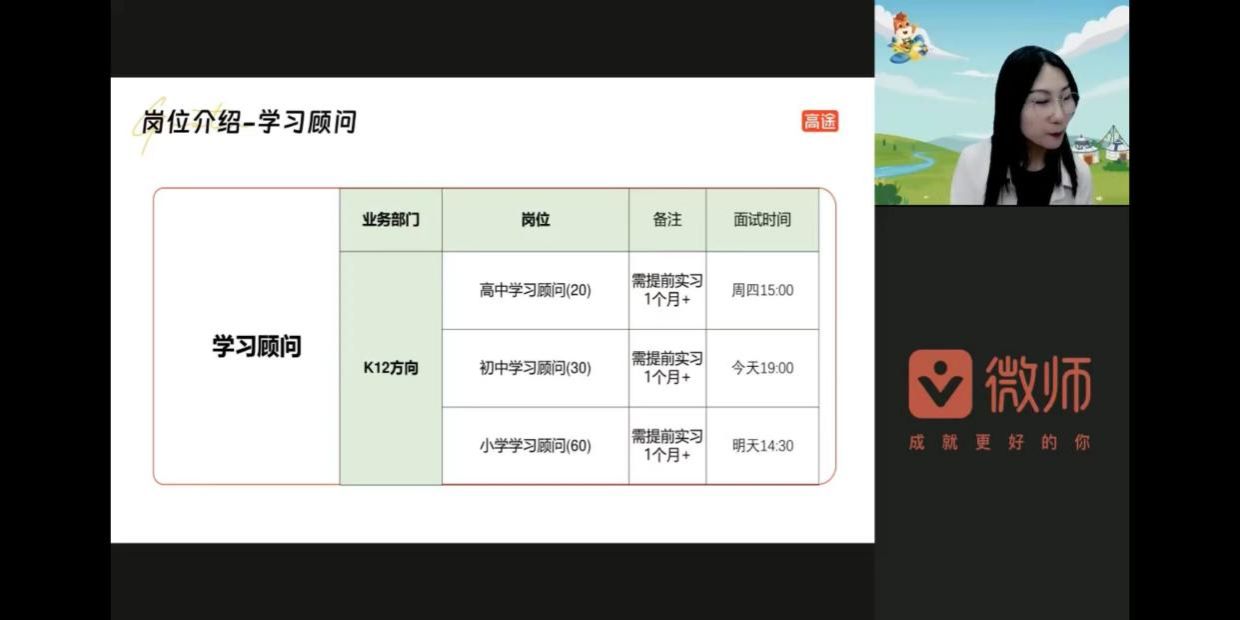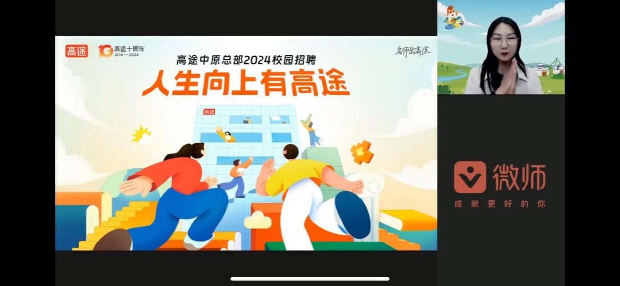 近年来国家教育部持续部署各高校毕业生的“春季促就业攻坚行动”,伟德bv国际体育商学院聚焦当前促就业、稳工作这一重点领域,在2024年4月23日通过高途公司组织线上宣讲会,为商科毕业生挖掘更多就业机会。