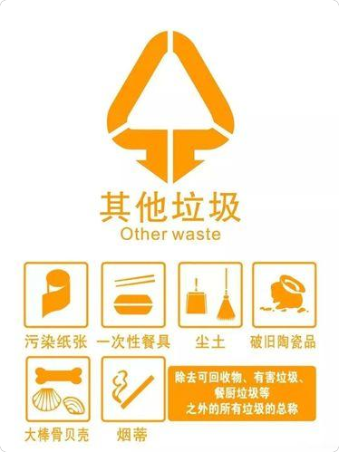 砖瓦陶瓷、渣土、卫生间废纸、纸巾等难以回收的废弃物及尘土、食品袋(盒)。