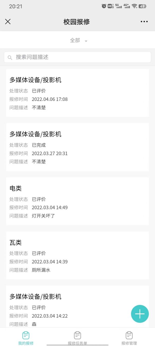 、用自己的“学号/工号”和“密码”登录后,选择“全部服务”——“移动园校报修”项目,如下图所示: