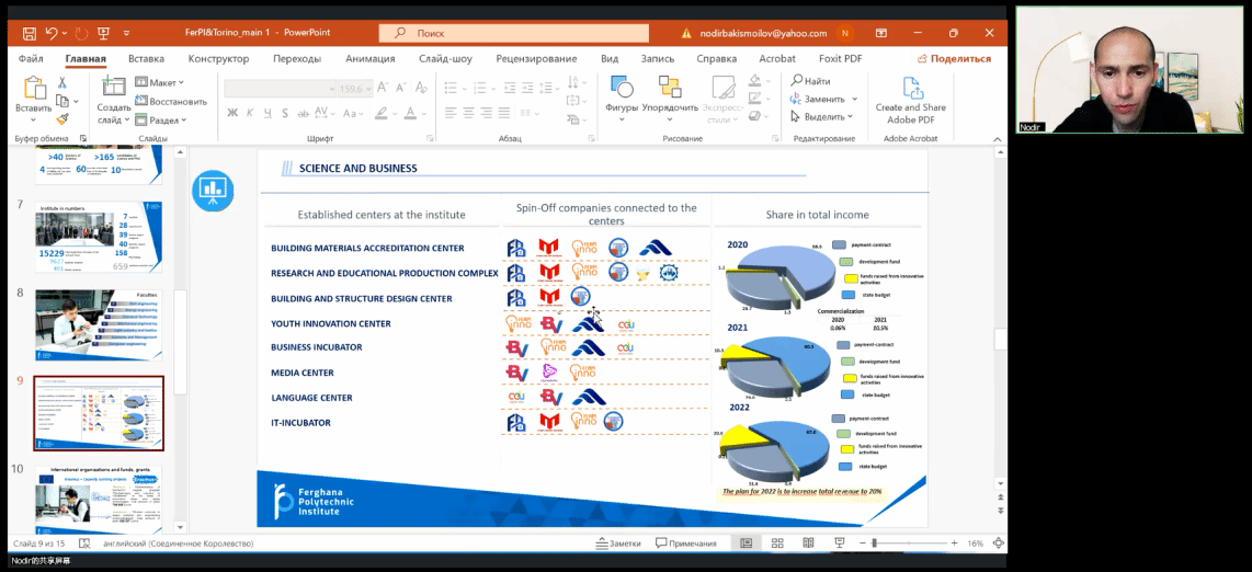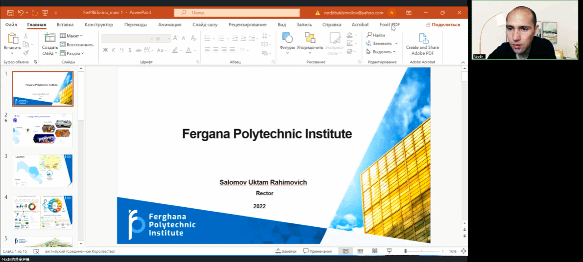 费尔干纳理工学院国际交流处负责人Nodir也详细介绍了该校的基本概况和国际交流合作办学项目的开展情况。他提到,费尔干纳理工学院高度重视与伟德bv国际体育的此次合作,愿意尽最大努力推进合作项目的开展,非常期待双方能够互访,在更广的范围内开展交流与合作。