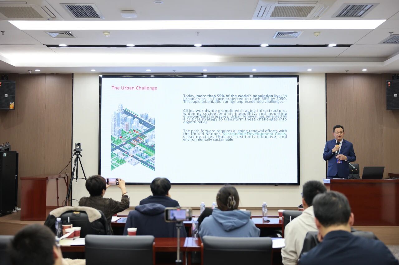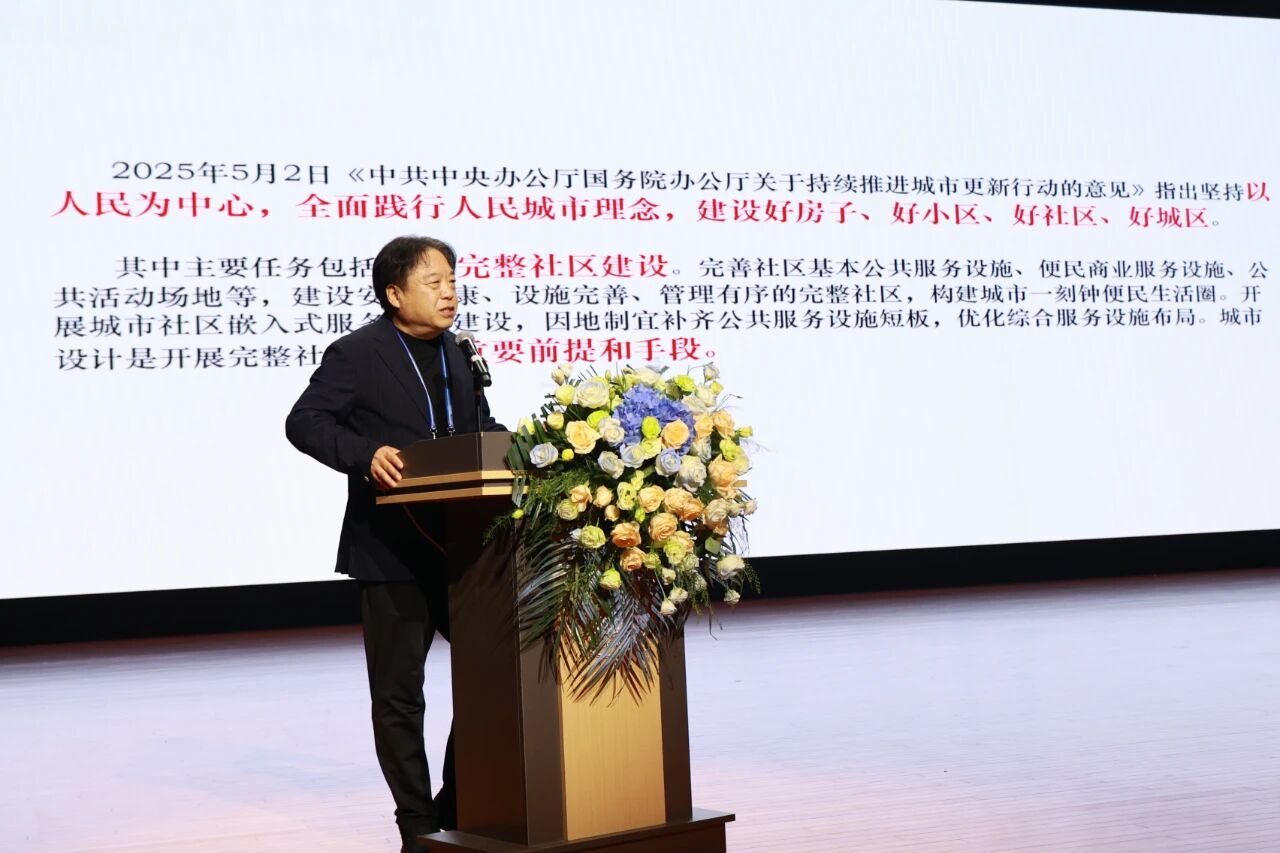 在主旨报告环节,四位国内外知名专家带来了精彩纷呈的学术分享。河北省建筑设计研究院有限责任公司董事长、总建筑师、河北省建筑大师郭卫兵以《城市视角下的城市更新》为题,分享了本土实践的深刻思考;意大利建筑设计公司创始人马里奥·卡迪那斯在《建筑与环境:迈向再生设计》中,引入了前沿的国际设计理念;伟德bv国际体育副校长武勇教授结合本校实践,作了《城市更新视角下的校园更新》的专题分享;意大利Baoblab创始人吉罗拉莫·巴尔巴恰以《超越区规划:为幸福和快乐设计城市,城市共存与情感可持续性的新逻辑》为题,探讨了城市规划中的人文关怀与情感维度。各位嘉宾的分享内容详实、案例生动、观点新颖,辅以精美的视觉材料,为与会者带来了强烈的思想碰撞与艺术震撼。