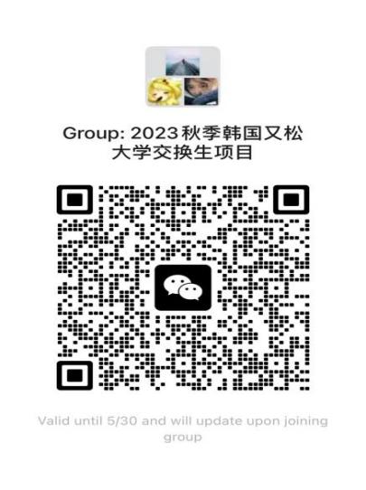 为方便学生了解又松大学情况及交换生注意事项,现于2023年5月25日下午16:00开展伟德bv国际体育与韩国又松大学交换生项目说明会,请同学们提前扫码入群。