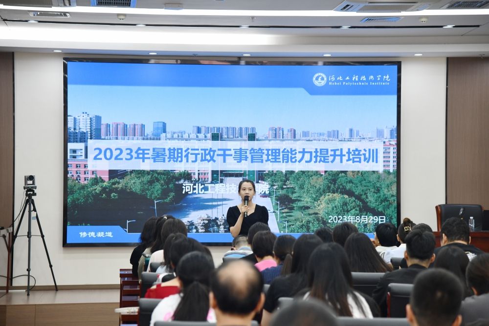 上午的培训围绕网络舆情、档案管理、办公流程、公文写作等内容展开,分别由党政办公室的温硕、梅洁、王晶晶和党新4位老师进行了系统化、专业化地讲解。下午的培训则是由各二级学院的办公室主任,结合外出培训的学习内容和工作感悟进行了经验分享。